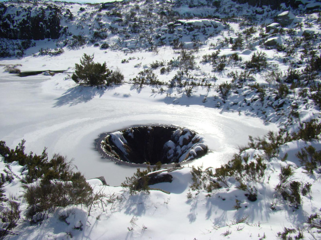 Khi mùa đông đến và mặt nước hồ Laca Serra da Estrela bị đóng băng, cái hố chìm nom hệt như cánh cổng địa ngục này lại càng tăng thêm vẻ thần bí. Cả thác nước đổ xuống lẫn thảm thực vật kiên gan trên thành phễu cũng đều bị đóng băng. Chúng tạo nên như một bức tranh tĩnh đầy mê hoặc.